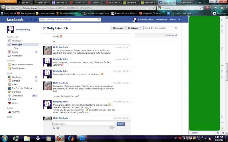 Due to having received notes a little while ago about the artist so-far not finishing her kickstarter, and people having found my journal, I have been updating and decided to try once more to get a true answer from Molly about what was happening with my commission. A comment on her page had implied she scammed her kickstarter supporters - I will not say that she has scammed them, since she HAS been giving them updates lately - however, she did imply that she had never scammed someone before. I felt I had the right to reply, saying she still had yet to finish my commission. I received a response from her a few hours ago, which was not very pleasant, but gave me the closure I needed.